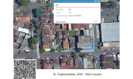 Nº. Produto: 1 Data de terras sob no 18 (dezoito), da quadra no 24 (vinte e quatro), VILA CASONI, Rua Tremembes, Rua Tupinambas